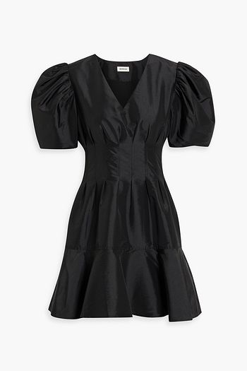 Strapless bow-embellished duchesse-satin and velvet mini dress