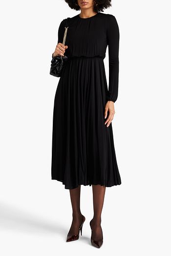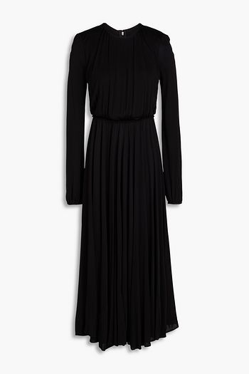 Bead-embellished wool-blend jersey turtleneck midi dress