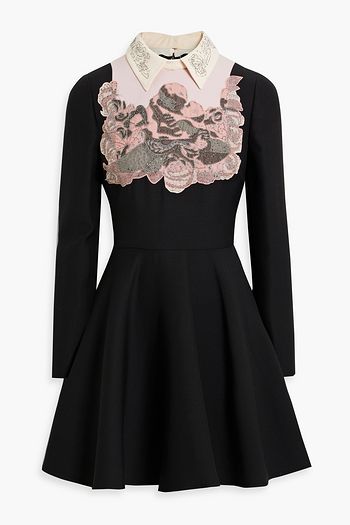 Embellished wool and silk-blend crepe mini dress