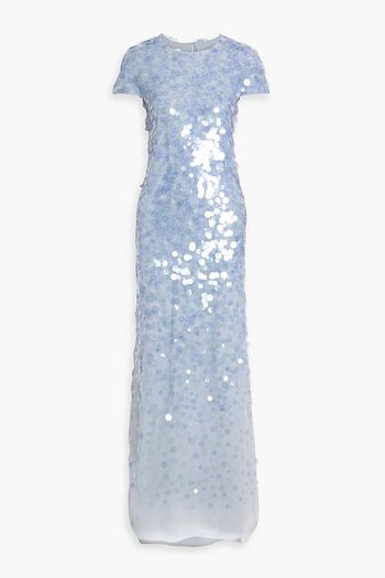 Sequin-embellished floral-print georgette maxi dress