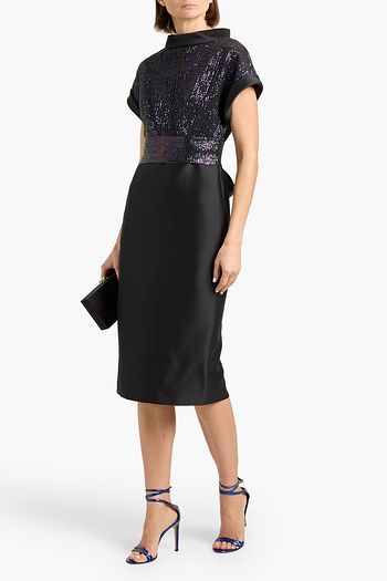 Kenz sequin-embellished knit-paneled taffeta mini dress