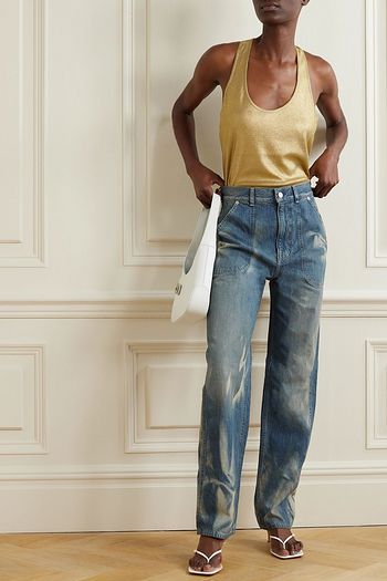 Bead-embellished high-rise tapered jeans
