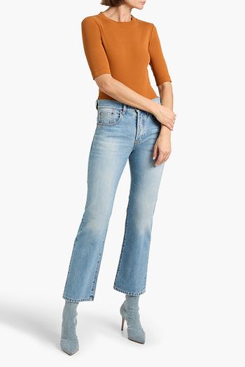 Cropped faded high-rise bootcut jeans