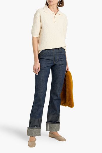 Knit-paneled high-rise straight-leg jeans