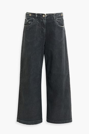 Corduroy-trimmed high-rise wide-leg jeans