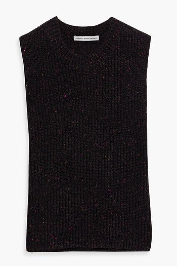 Leopard-print silk satin-paneled wool and cashmere-blend sweater