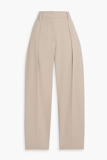Pleated cotton-blend twill tapered pants
