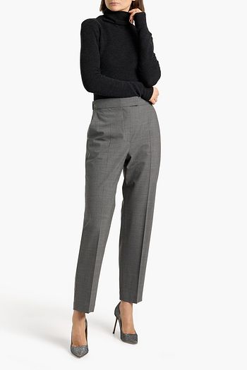 Bead-embellished cotton and wool-blend gabardine tapered pants