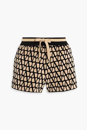 Sequin-embellished open-knit cotton-blend shorts