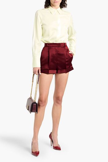 Pleated cotton-organdie shorts