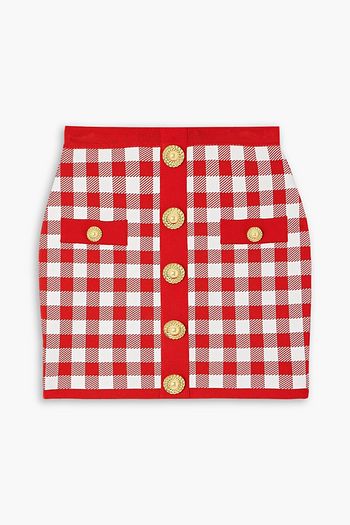 Checked cotton-blend tweed mini skirt