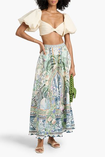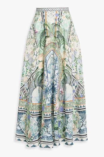 Printed cotton and linen-blend maxi skirt