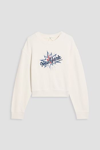 Embellished floral-print silk-crepon blouse