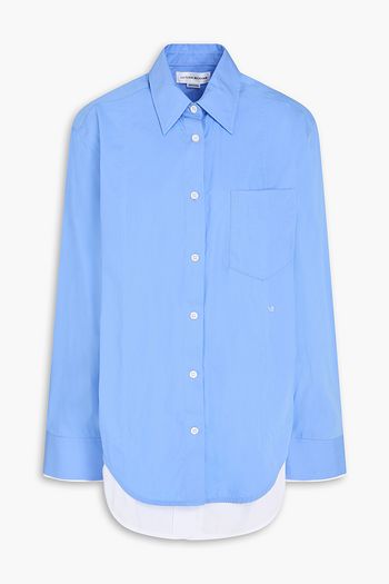 Beatrice cropped organza-trimmed cotton-poplin shirt