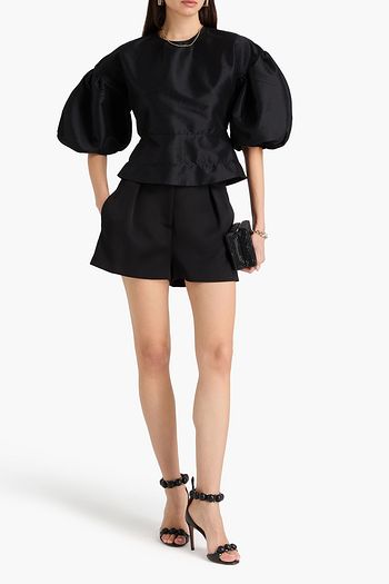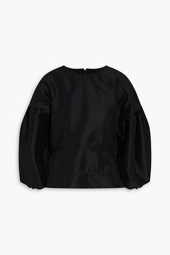 Marlowe bow-detailed printed silk-twill and cotton broderie anglaise top