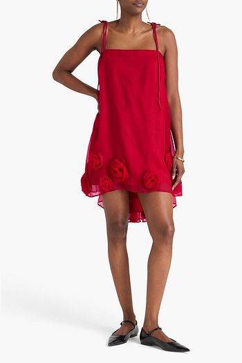 Guipure lace-paneled linen and silk-blend gauze tank