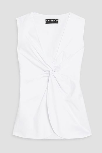 Belted printed cotton-blend poplin top