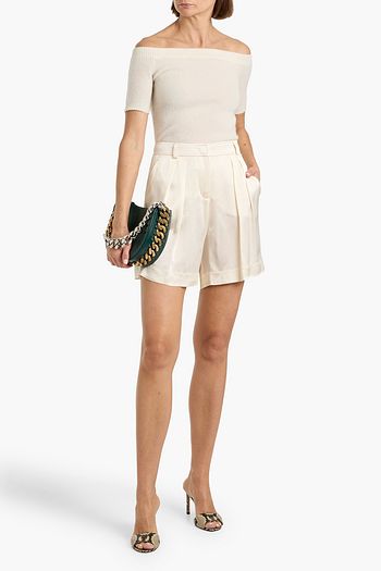 Organza-trimmed satin-crepe wide-leg jumpsuit