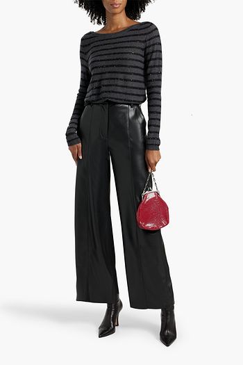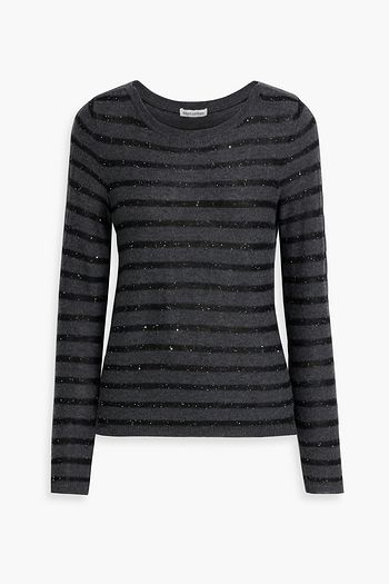 Crystal-embellished striped cashmere-blend sweater