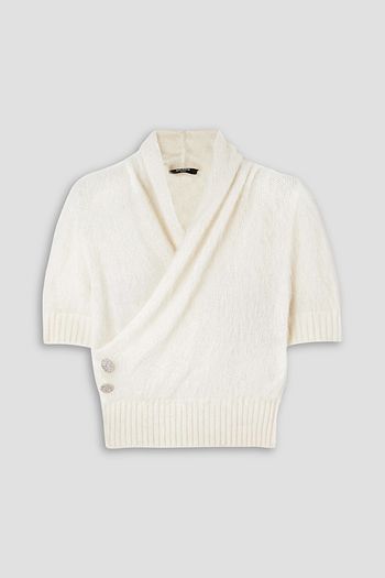 Draped crystal-embellished mohair-blend sweater
