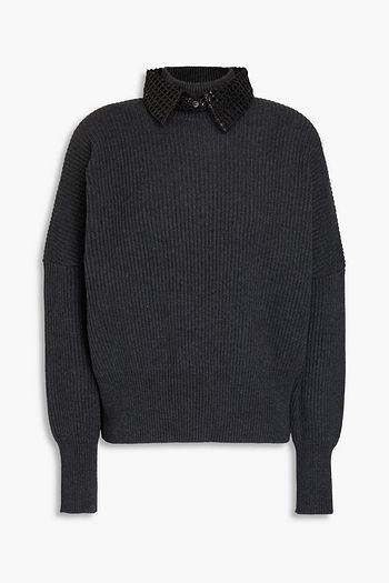 Bead-embellished ribbed cashmere turtleneck sweater