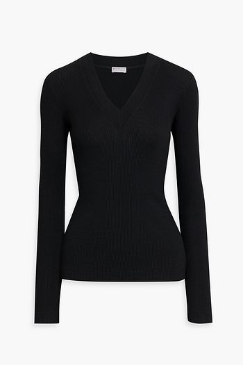 Bead-embellished cashmere and silk-blend turtleneck sweater