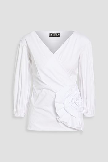 Elizee wrap-effect cotton-blend poplin top