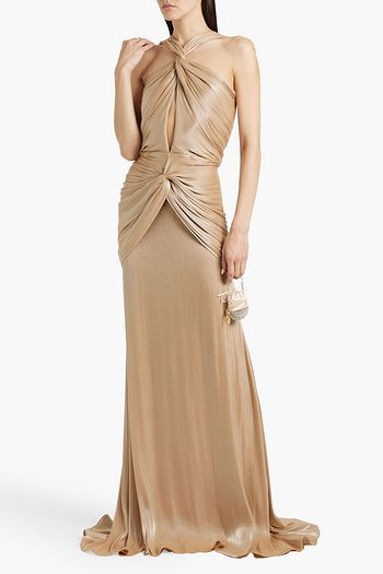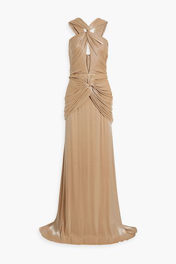 Twisted cutout satin-jacquard gown