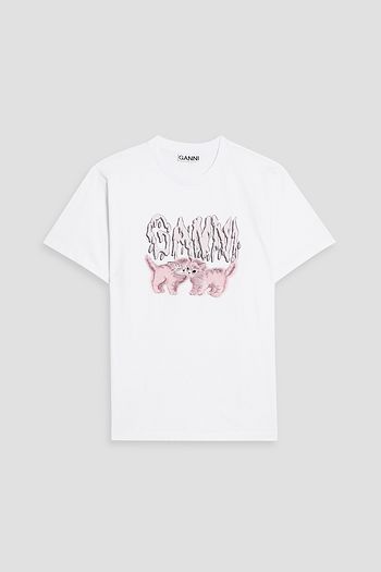 Give your wardrobe a cool-girl lift with GANNI's T-shirts. Tapping Creative Director Ditte Reffstrup's sought-after playful approach to design, each tee is emblazoned with graphic prints and witty slogans. We like to style ours with the brand's patterned skirts, though they look just as good tucked into denim or tailoring.
