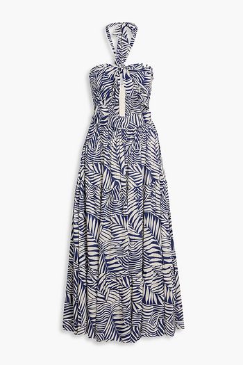Tiered cutout printed ECOVERO™ crepe halterneck maxi dress