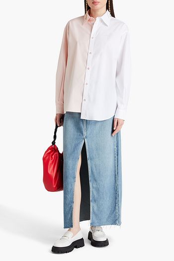 Marni has carved a reputation for designing classics with a twist – its shirts defy convention in an array of colors and shapes. Showcasing Italian tailoring and quality cotton and silk, the sharp silhouettes are a marriage of ‘80s power dressing and the label’s patent innovation. Tuck boxy and fitted styles into flared skirts and coordinating pants.