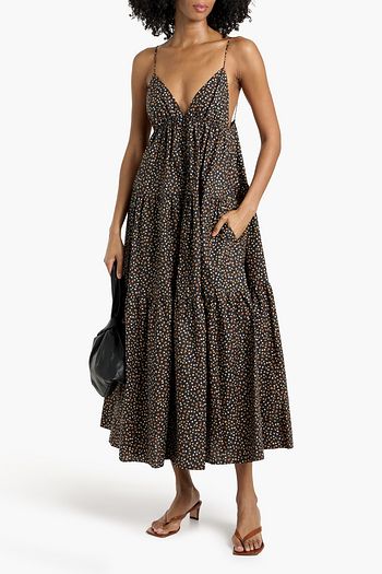 Tiered floral-print cotton-poplin maxi dress