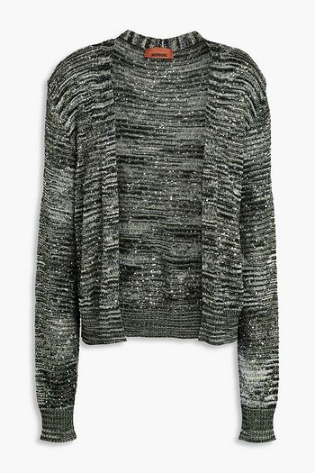 Sequined striped crochet-knit cardigan