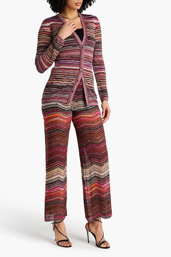 Metallic striped ribbed-knit cardigan