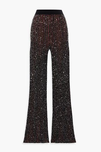 Sequin-embellished ribbed-knit flared pants