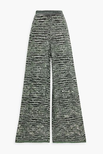 Sequin-embellished metallic crochet-knit wide-leg pants