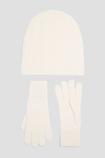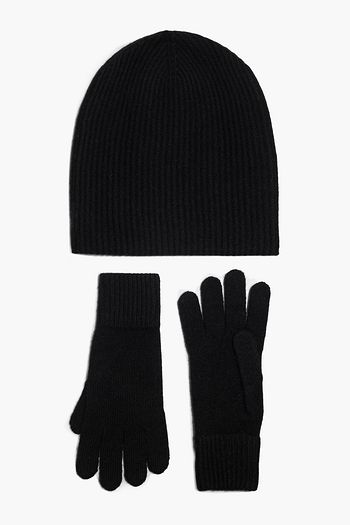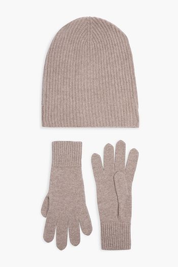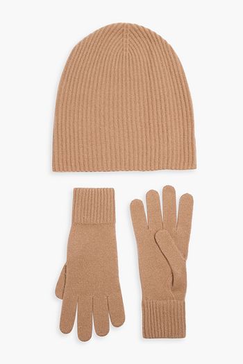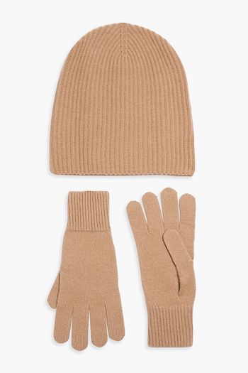 Ribbed cashmere beanie and gloves set