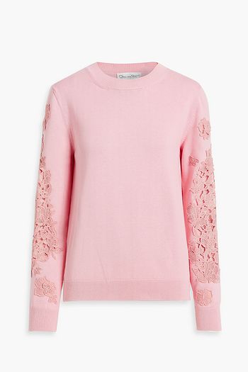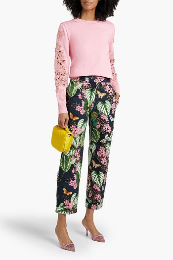 Guipure lace-trimmed cotton sweater
