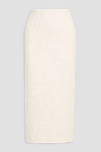 Lattice-trimmed cotton-blend bouclé midi skirt