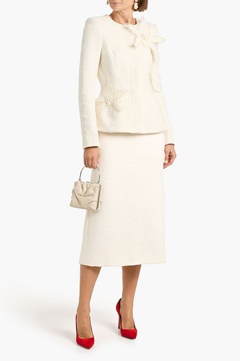 Floral-appliquéd cotton and silk-blend faille midi skirt
