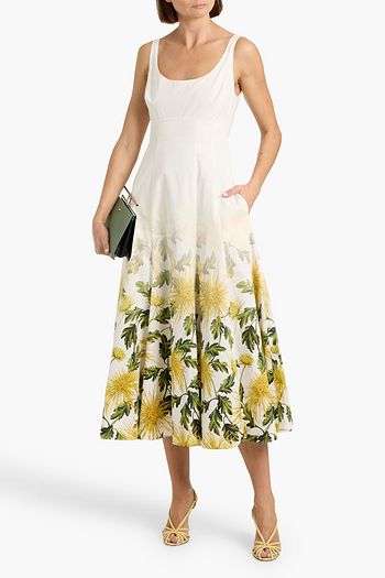 Asymmetric floral-print cotton-blend poplin midi shirt dress