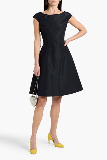 Off-the-shoulder pleated floral-print cotton-blend poplin dress