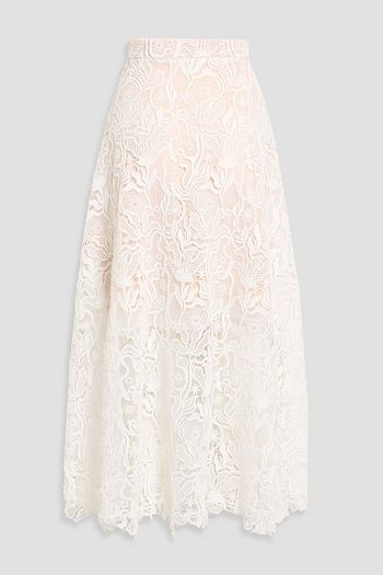 Guipure lace-paneled grain de poudre wool wide-leg pants