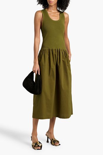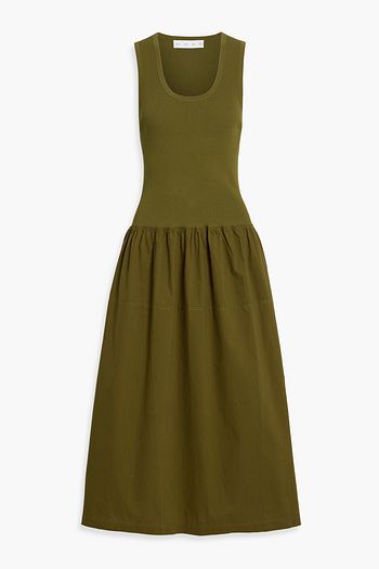 Malla knit-paneled cotton-poplin midi dress