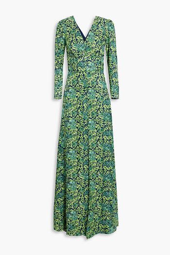 Mitsu ruched printed silk-satin jacquard maxi dress