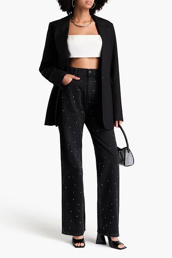 Crystal-embellished high-rise straight-leg jeans