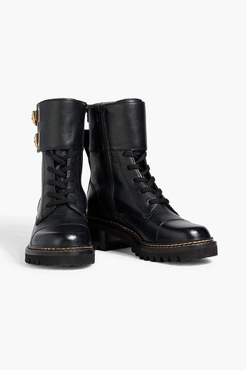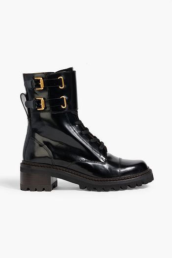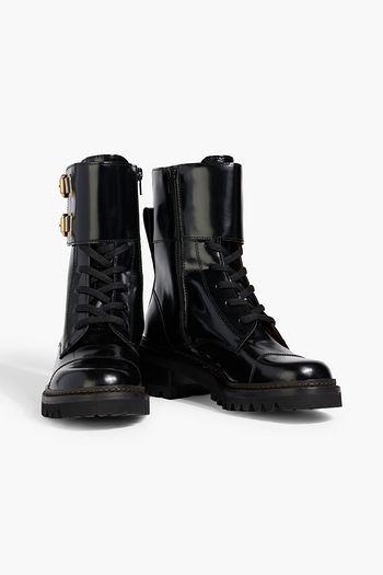 Mallory buckled glossed-leather combat boots