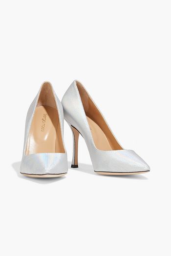Iridescent textured-leather pumps