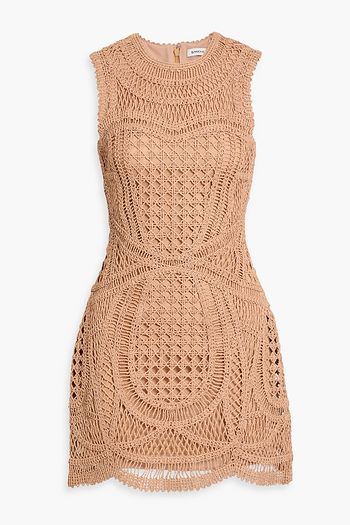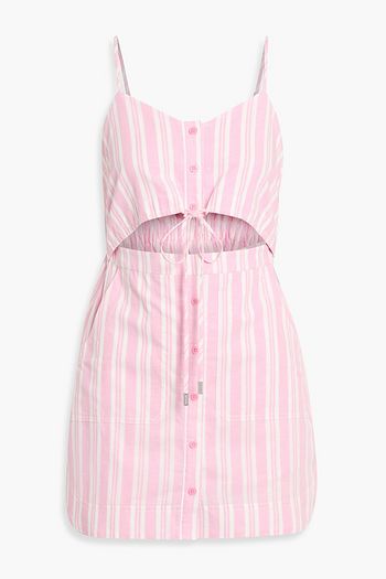 Puff cold-shoulder ruffled cotton and linen-blend mini dress