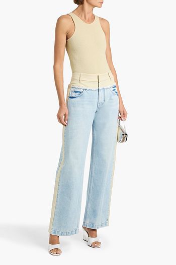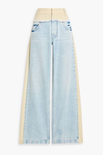 Cutout crystal-embellished frayed mid-rise wide-leg jeans
